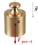 L'action de pesanteur s'exerçant sur un système matériel S (ou poids) peut être modélisée d'un point de vue global par un glisseur passant par son centre de masse G :