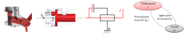 Rappel (méthode cinématique) : la liaison équivalente entre 1 et 0 se détermine en égalisant les torseurs cinématiques :