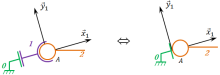 \(\Leftrightarrow \, \{ \mathcal T_{eq,2 \rightarrow 0} \}={\vphantom{\left \{ \begin{matrix}X_{21} & L_{21} \\Y_{21} & M_{21} \\Z_{21} & N_{21} \\\end{matrix} \right \} }}_{A}\left \{ \begin{matrix}X_{10} &0 \\0 & 0 \\0 & 0 \\\end{matrix} \right \}_{\left( \vec x_1, \vec y_1, \vec z_1 \right)}\), avec \(X_{20}=X_{21}=X_{10}\)