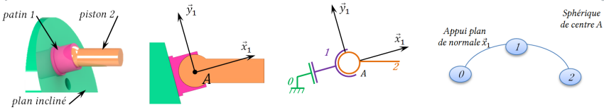 Liaison sphère plan de centre A et de normale \(\vec x_1\)